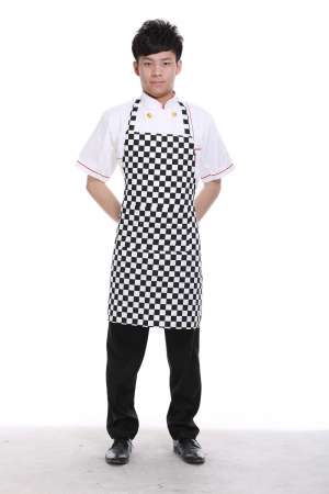 餐廳廚師圍裙掛脖黑色長(zhǎng)袖酒店工作服定做中